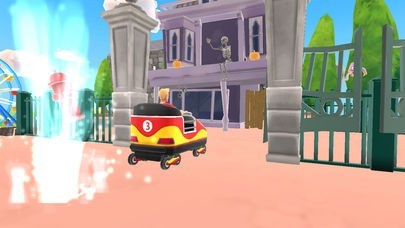 Thrill Rush Theme Parkでは、ゲームを進めるたびにプレイヤーキャラクターのコスチュームを変更したり、ジェットコースターの乗り物をイルカやユニコーンに変更して楽しめます。