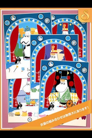 App Storeより引用ムーミン キャラクターたちがコスチューム パーティーの準備をしていて、あなたは彼らがどれを着ればよいかを決めることができます。 帽子、ズボン、スカート、シャツ、靴やその他をミックスしてから合わせてください。 衣装が気に入ったならば、写真を撮ってフォトアルバムに入れることができます。 衣類とアクセサリーの驚くべきセレクションによって、ムーミンのコスチューム パーティーでの多くの楽しみやアクティビティーが長い間続くことを保証します。