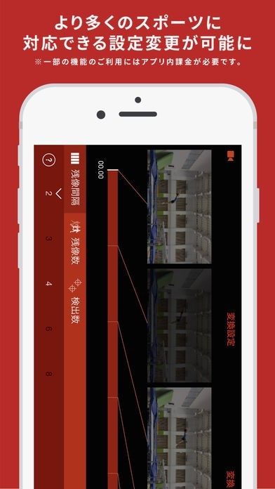 撮影するスポーツに合わせて残像を残す間隔や必要な部分だけ残像を表示できるよう残像数を制限したり、団体競技の場合はチームの人数に応じて検出数を変更することができるようになっています。