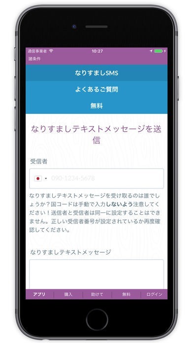 フェイクのなりすましテキストメッセージ(SMS)を送信