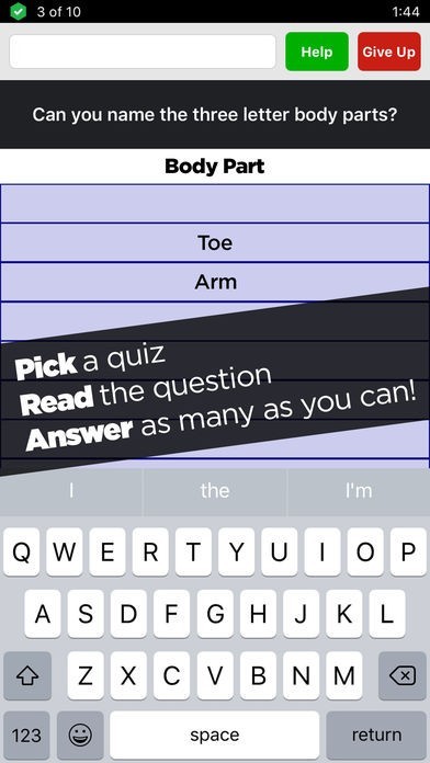 スポーツや映画等の様々なブレインディング問題に挑戦する事が可能なので、雑学の知識を増やしたい際に良かったです。ヒントが確認出来るヘルプ機能も使いやすいです。