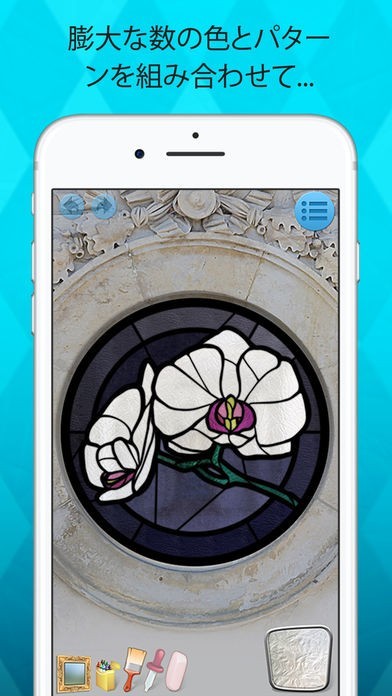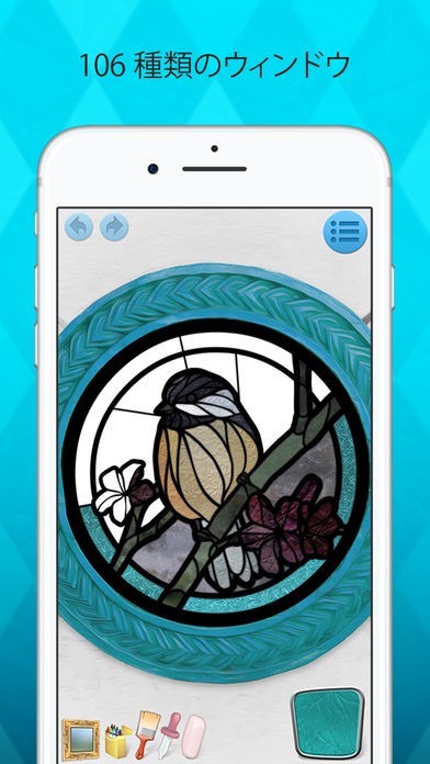 まるでステンドガラスを作っているように、ガラスを塗っていくぬり絵です。人と違うぬり絵を楽しみたい方にぴったり。大人から子供まで楽しめます。指一本で色を選択し塗っていけるので操作はとても簡単です。