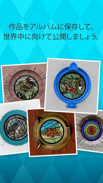 上手くできたステンドガラス作品は保存することができます。アプリ内のアルバムにどんどん保存しましょう。メールなどのSNS機能を使えば、友人知人や親族に作品を送ることができます。