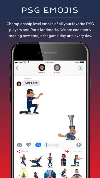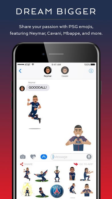 When it comes to football/soccer emojis, Paris Saint-Germain brings you the best of the best. All your favorite players (Neymar), iconic landmarks (Parc des Princes) and PSG cheers (Dream Bigger) captured in animated emojis and stickers. Some features of our emoji keyboard:
