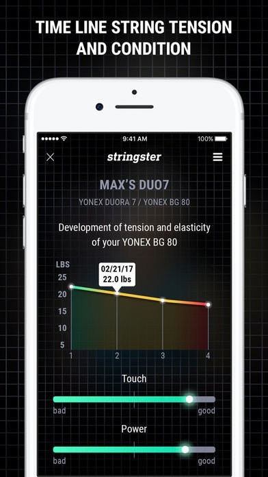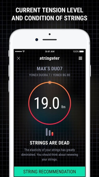 App Storeより引用Play badminton more effectively with a perfectly strung badminton racket! The stringster app measures the tension level of your strings by their sound. This helps you: