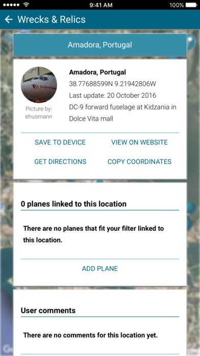 The app is ideal for situations where you find yourself with some time to spare to check some locations, but without the opportunity to fully investigate beforehand. Just find the locations close by and start navigating. And, you can also store locations on your device for offline use. A connection is needed to use the map, but stored locations are always available. Store the locations before leaving, so when you find yourself in a country where you have no connection, you can still find the aircraft you are looking for.