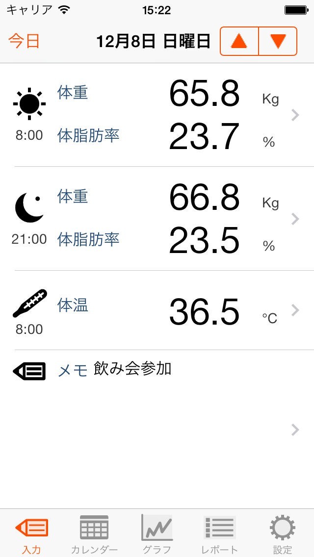 体重や体脂肪率や体温の数値をタップ入力するだけで簡単に健康管理が可能になる