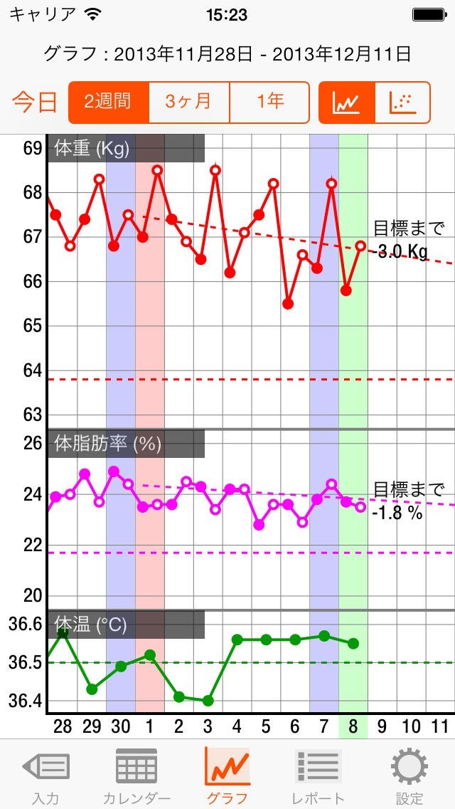 体温や体重等を入力する事で自動でグラフにしてくれるので一目で自分の体重が短期間でどれだけ変化したかというのが分かってその間の生活習慣が良かったか悪かったか分かるので便利です。