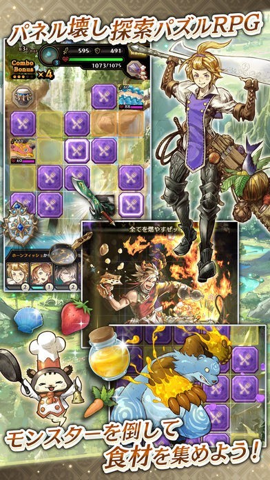 料理がテーマのパズルRPG!ダンジョンに潜って食材調達、調理で他プレイヤーとのシェアも!!