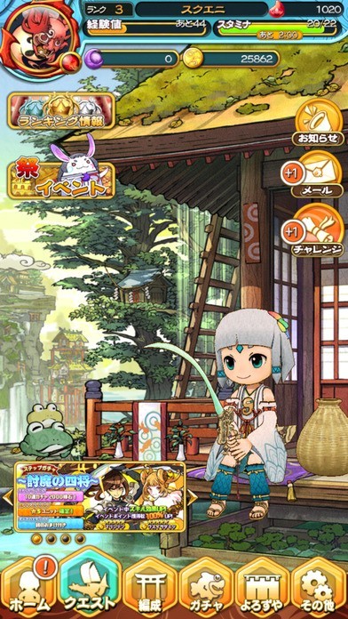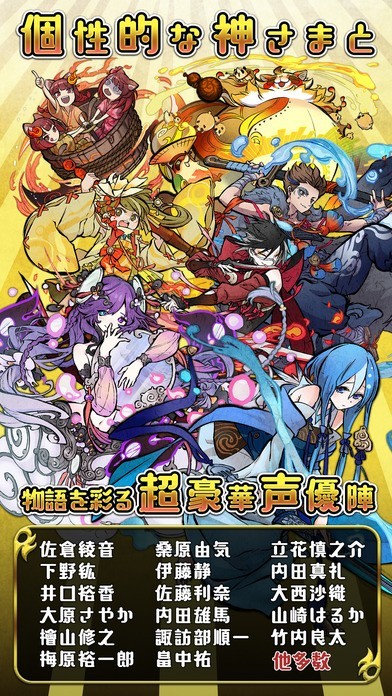 日本神話とファンタジーが融合した完全新作RPGアプリはコミックアプリ「マンガワン」でコミカライズが連載されています。同じ色のパネルと敵を繋げるだけなので簡単な操作で楽しめるゲームで長くつなげば大ダメージを与えることができます。沢山パネルを消せば「フィーバーモード」が発動して大逆転でボスを倒すこともできます。規定のターンを消化すればスキルが使えてパネルの色を変えたり、攻撃することもできます。さまざまなスキルを組み合わせて敵を倒そう!ガャで手に入れた神様を育成して強化させよう。指定された敵を全て倒せば進化が出来るようになります。成長がMAXになった神様は次の進化を遂げるかもしれない・・・