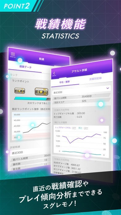 星と翼のパラドクスのプレイ内容を取り込む事ができ、実績として細かく確認が可能です。武器設定やスキルの変更や、戦術傾向の分析が可能なので、プレイがよりスムーズになります。