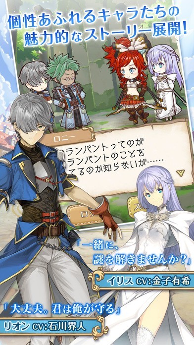 「天穹のアルクルス」は、空をなぞる、冒険者たちの物語です。空に浮かんだあまたの遺跡、そのいずれかにあると言われる秘宝「アルクルス」を求めて浮遊都市シエルヴィルに集まる冒険者たちのストーリー、主人公のリオンもその一人です。物語は、彼が三人の仲間と出会ったところから始まります。画面をなぞって敵に向かってキャラクターを移動させる簡単なバトル、途中で仲間を通過すればコンボが発生します!簡単な操作なのですが戦略性の高い戦いを楽しめます。主人公リオンをはじめとした個性あるキャラクターが登場します。