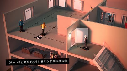 このアプリでは、ジオラマ風に表現されたフィールドで暗殺アクションパズルを遊べます。見張りに見つからないように移動するステルスゲームの緊張感はそのままに、全く新しい「ヒットマン」シリーズの作品として仕上がっています。