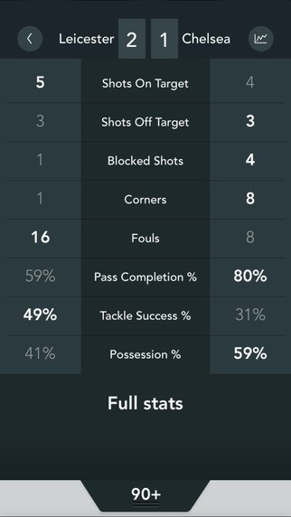 *Real-time stats on leagues from all over the world including the EPL, La Liga and the UEFA Champions League.
