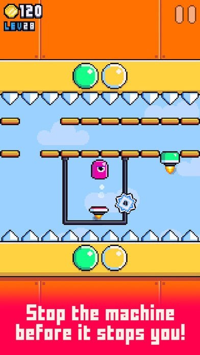 App Storeより引用Welcome to the Squish Machine! A machine designed only for squishing slow pokes who can’t turn it off in time. Are you quick enough for this action puzzler?
