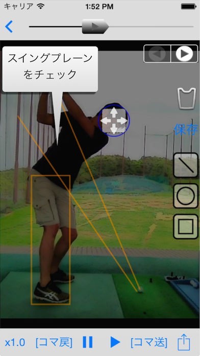 このアプリはカメラ機能を使用して自分のフォームを撮影して改善点をかき出し、フォーム改善に役立たせるアプリです。スロー再生なども出来るので細かい改善を行うことが出来ます。