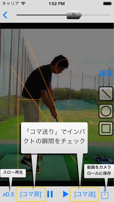 撮影したフォームはスロー再生をすることが出来ます。スローで再生することで肉眼では判別しにくいようなフォームのずれ、フォームの乱れを確認することが出来るので完璧なフォームを目指すことが出来ます。