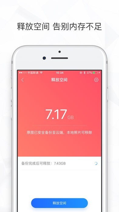 已备份的照片安全保存在云空间,一键释放手机空间并且不影响照片正常浏览哦~