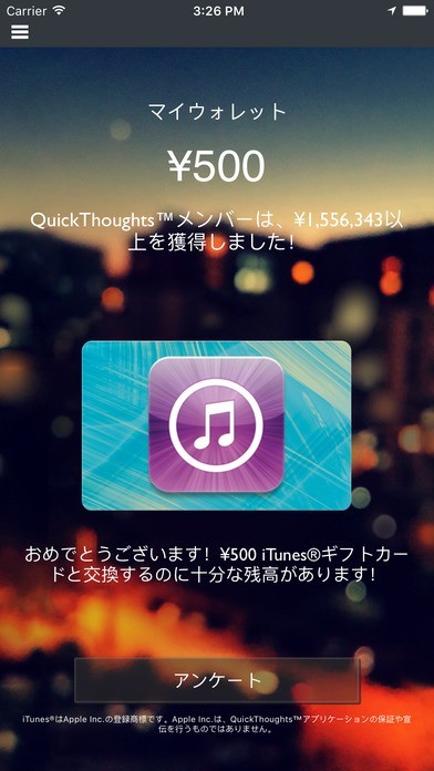 空いた時間のアンケート回答でiTunesギフトカードと交換可能なポイントがもらえる!!