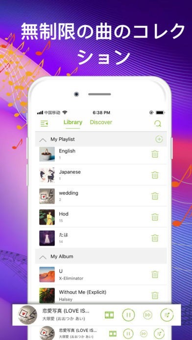 人気の曲がリサーチ出来るディスカバリー機能が付いているので、流行りの音楽も見つけやすい