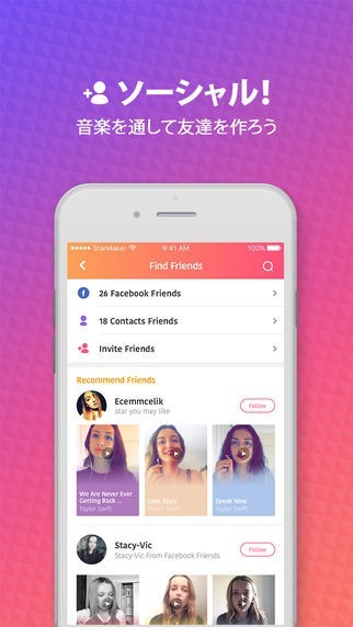 人気の楽曲でカラオケが出来る「StarMaker」は歌声を録音していける音楽アプリで、様々なエフェクトを付け加えられる特長があります。世界中のユーザーの歌声を聴くことが可能ですし、合唱モードを通して友達同士でカラオケを楽しめるのが機能のメリットでしょう。楽曲を歌うことでポイントをどんどん獲得していけます。また貯めたポイントで新しい曲を入手していけるため、練習も幅広く行えるようになっています。歌っている姿を動画で録画出来るのも利点です。