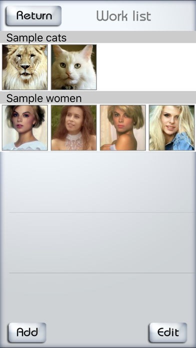 取り込んだ顔画像はアプリ内に保存され、自由に組み替えて瞬時にモーフィングムービーを作成できます。
