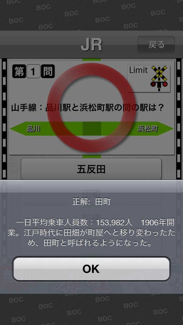 4択の中から2駅間の駅を選ぶシンプルなゲーム。問題は各路線10問。8問以上で合格となり、合格者には切符が贈呈されます。