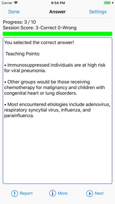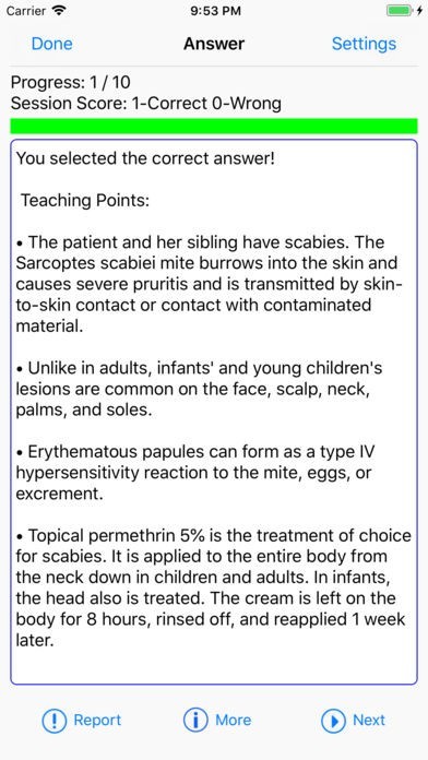 Explanations are linked to additional online references. Statistics are generated and include a list of keyword topics missed. These keyword topics will enable you to determine what areas need further study.