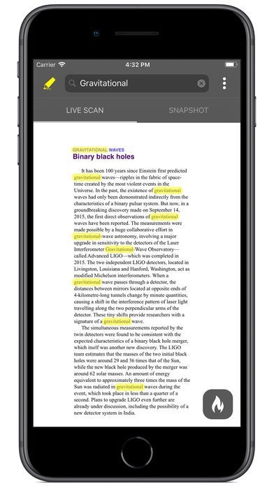 - Just hold your device over the text that you'd like to scan and type the words that you'd like to find in the search bar—the words will be highlighted on the screen when they're found in the text