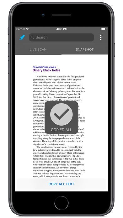 - Copy whole passages of text with just the tap of a button