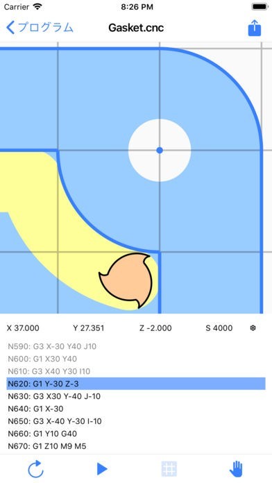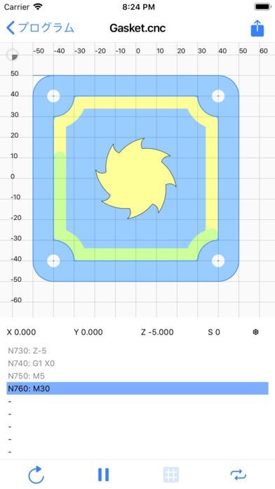 App Storeより引用これは2.5Dでの高品質CNCフライス盤シミュレーションです。