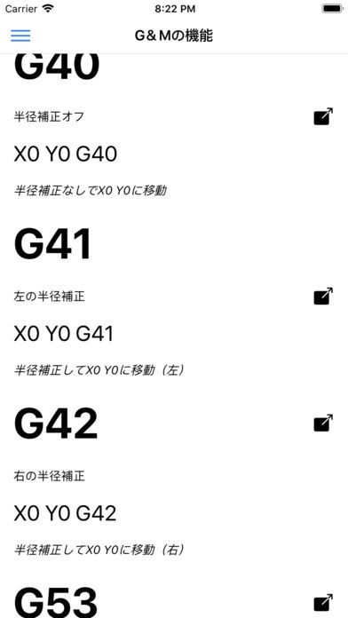 G0, G1, G2, G3, G4, G40, G41, G42, G53, G54, G55, G56, G57, G58, G59, G90, G91, G94, G95, M3, M4, M5, M6, M8, M9, M30, カスタムMファンクション!