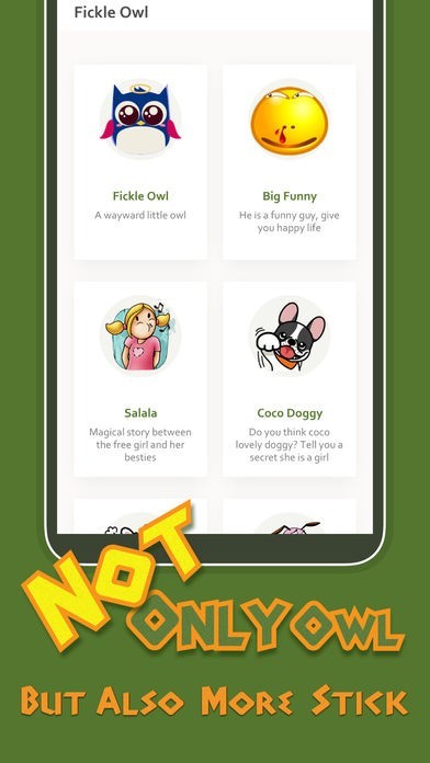 Fickle Owlというかわいいキャラクターのステッカーをダウンロードできる
