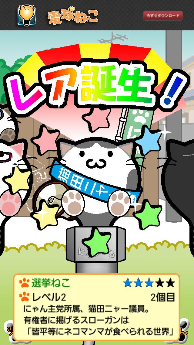 充電をする楽しみが増えるアプリで、誕生条件が特殊なレア電球ねこがでてくることがある