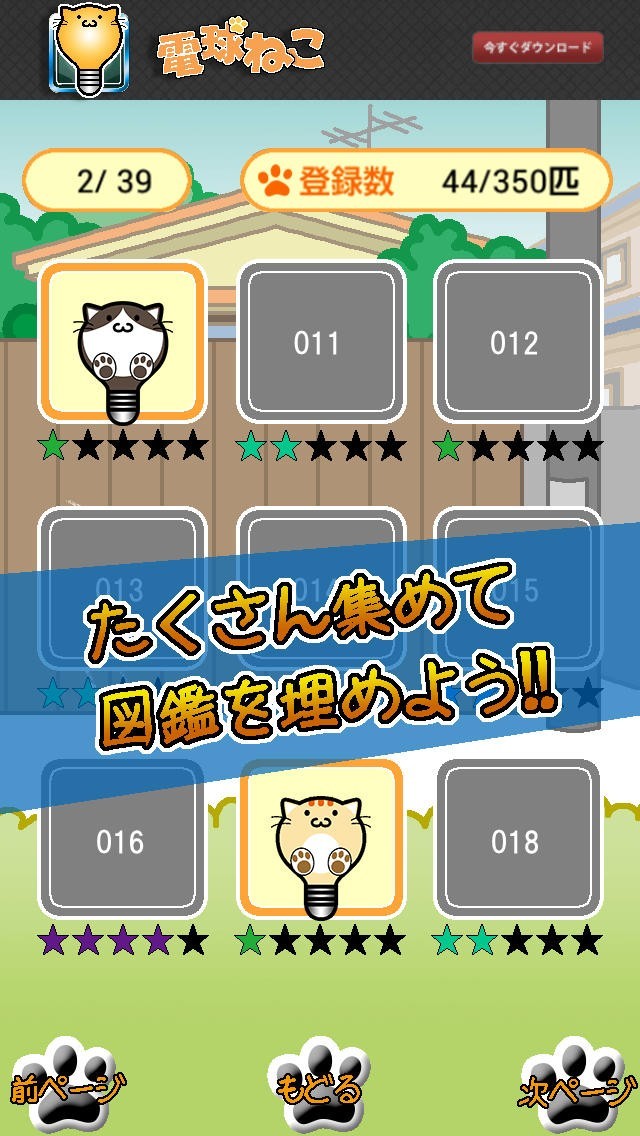 図鑑機能は、誕生した電球ねこは図鑑に集めてコレクションすることが出来る