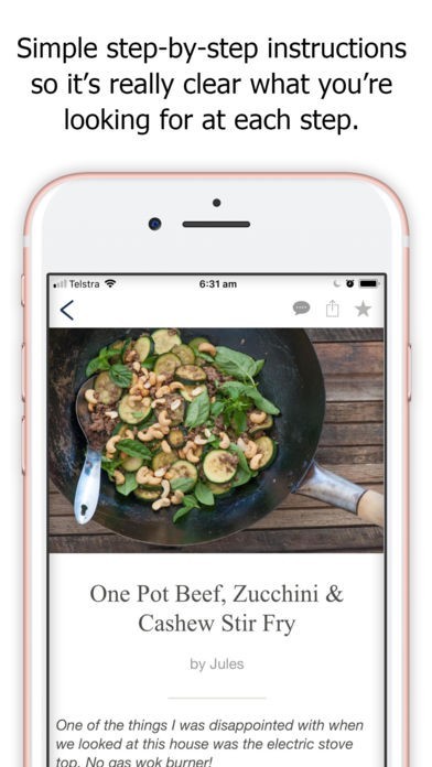 “This is a terrific little resource to have right in my iphone for the inevitable times in the supermarket, 25km from home, running around in tiny circles going WAAHHH! WHAT AM I DOING FOR DINNER? and trying to remember what is in the fridge. Jules, thanks a million for such a beautifully-put-together product.”