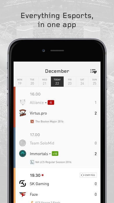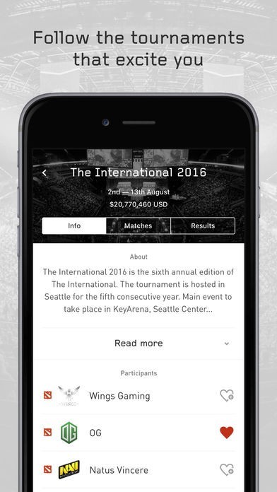 Esportsの大会やチーム、選手などの情報をスマートフォンでチェックすることができるアプリとなっていて、フレンド機能でユーザー同士でコミュニケーションをとることもできます。