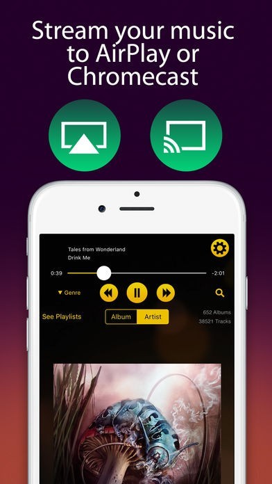 オーディオファイルに埋め込まれたタグとアルバムアートを抽出し音楽フォルダのファイルからアルバムアートを使用できるようになっているので使い勝手も良くて長く使いたいと思えて良いです。