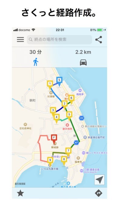 - マップ・ナビ 経路・ルートナビ ルートナビ(徒歩・自転車)