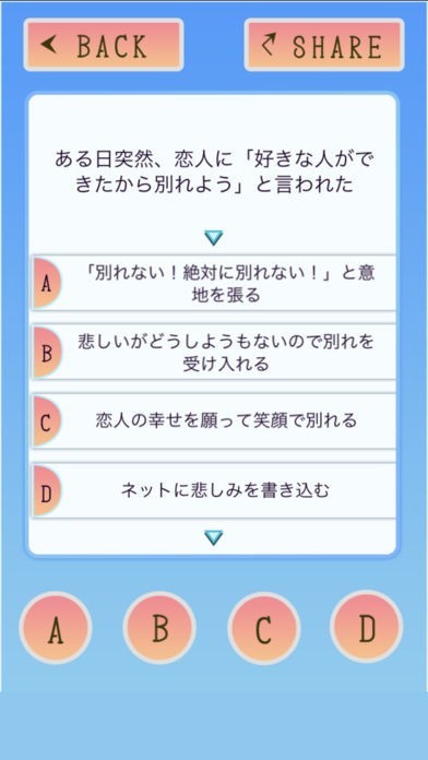 日常にあるシチュエーションで簡単な質問が200近くあるので、時間つぶしに最適です。ストレスでイライラしている時に心を落ち着かせて自分を見つめ直すことができます。