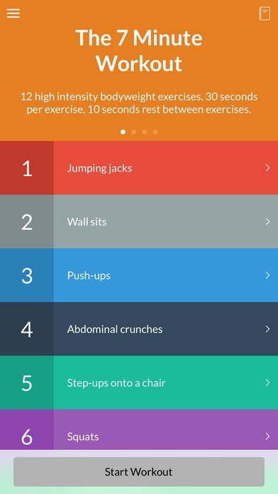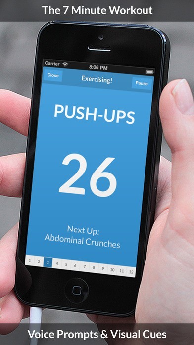 フィットネスアプリとなる「7分ワークアウト」には、体の部位別に効かせる12種類のエクササイズが収録されています。 また、エクササイズは1種類につき30秒間となり、エクササイズ毎に10秒間の小休止が挟まれるので、テンポ良くトレーニングを行うことができます。 他のデバイスを確認したりタイマーを操作しなくても、ボイスによるアナウンスが入るのでトレーニングに励むことができます。 ビデオと英文のテキストで解説されるエクササイズのやり方は、英語が分からない人でもビデオで視覚的にやり方や内容を把握できるので、戸惑うことなくエクササイズを試せます。