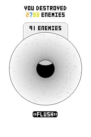 少しの時間で楽しませてくれるのが、この「one-dot enemies」です。ゲームのルールは簡単です。タイトル画面をタップし、次の画面で表示される敵をタップするのみです!ですが、一見すると次の画面は真っ白で、コミカルな音の割には何もいない様に感じます。良く目を凝らして画面を見てみてください。僅か1ドットのとても小さい敵が画面の中を蠢いています。目を凝らして小さい敵をドンドンやっつけていってください。敵をやっつけるとカラフルなドクロが出ます。この独特な世界観がとても癖になるゲームです。終わりがないゲームになるので、タイトルに戻りたい時は、スマホを振ればいつでも戻る事ができます。また、「RESULT」では、いままで倒した敵が保管されていて見る事ができ、「FLUSH」を押すと解放して、また0にリセットされます。ただひたすらに、時間を忘れて敵を倒す事に没頭してみましょう。
