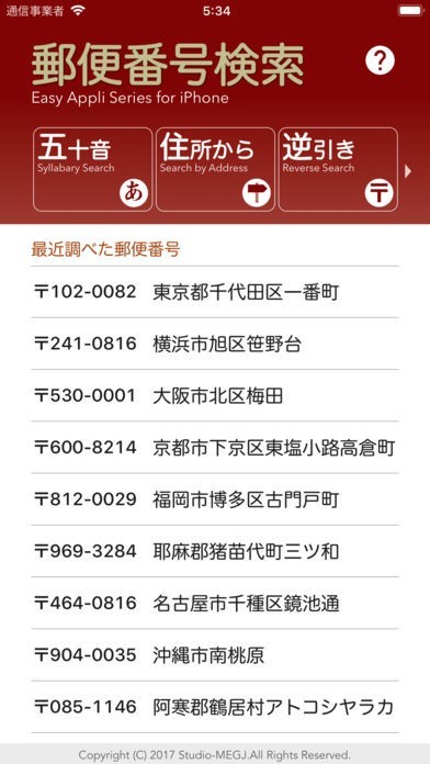 2. 郵便番号や住所のデータはアプリに含まれていますので、ネットにつながっていない場所でも調べることが出来ます。