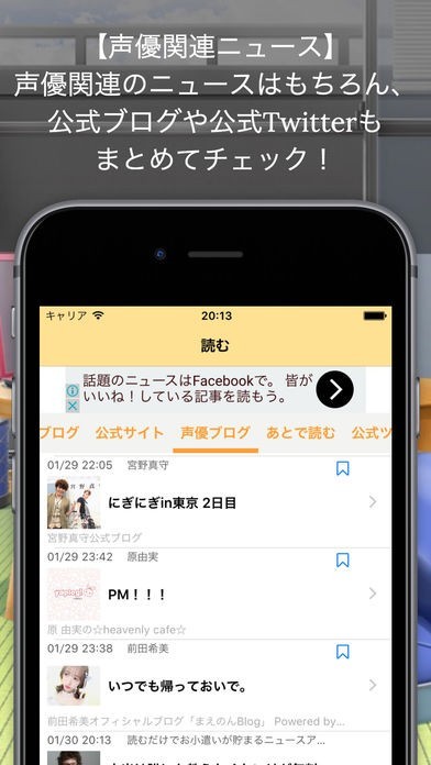 声優ブログ、公式サイトなどのカテゴリーごとにまとめられている