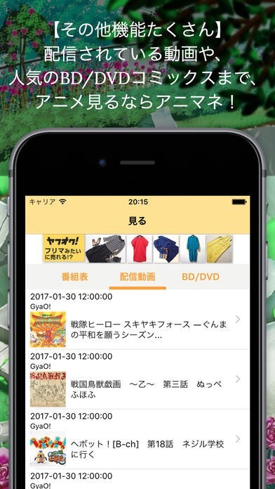 このアプリの「番組表」をチェックすることによって、BSやCSなどを含めて時間ごとに番組を表示できます。 また、通知機能によって、登録しておいた番組を見逃すことがなくなるので、スマホゲームなどに熱中していた場合にも気が付くことが出来ます。特にニコ生については忘れてしまいがちなので大変役立ちます。 また、BDやDVDの発売情報まで見れるので、予約をするきっかけにしたり、購入するかの判断したりできます。 他にも、アニメニュースを見ることが出来たり、声優ブログ、公式サイトなどのカテゴリーごとにまとめられているので、わざわざサイトに訪問することなく気軽に情報入手することができるので、スキマ時間にチェックするのに向いています。 他にも、お気に入り機能に登録しておけば、関連する情報だけをまとめて示してくれます。