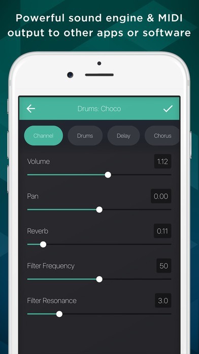 特徴的な作曲アプリですが、普段からDAW関連のアプリに触れている人にも使いやすくなっています。チューニングやテンポ調整など細かな設定ができるのはもちろん、他のDAWアプリに作曲データを転送することも可能になっています。