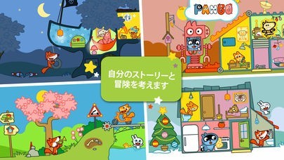 App Storeより引用パンゴ、子ブタ、キツネ、リス、ウサギ...ゲームやアクティビティがいっぱいのお家にあなたを招待しています。 パンゴランドは、あなたの小さなお子様に想像力を広げさせる初のゲームです。この"サンドボックス"アプリケーションを使用すると、子供たちが魅力的な宇宙を探検し、今まで経験したことのないような自由を楽しむことができます。