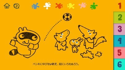 物語に差し込まれる一部シーンを塗り絵で楽しめます。色味はペンキブラシを画面上部の色に触れることで塗れるようになり、読んだだけでなく彩色をして二度遊び尽くすことが可能です。