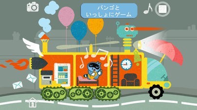 できあがった車にパンゴを乗せて、いろいろな部品や後ろのけしきを変えてみよう。