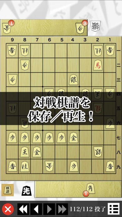 アプリで行った対戦は記録して後から振り返ることができます。対戦棋譜の保存&再生機能を使って、自分の対戦を見直しましょう。良かったところ、悪かったところを確認して、棋力アップにつなげましょう。